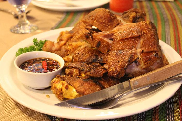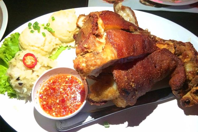 ៣-ជើងជ្រូក រៀបដាក់ចូលឆ្នាំង សម្រាប់ស្ងោរ ចាក់ទឹកចូលល្មមលិច រួចបង់ មើមខ្ទឹម ម្រេច និងឫសជីរវ៉ាន់ស៊ុយ ដែលបុកហើយ ចូល។ ថែមអុបឆឺយ ប៉ូចកាក់ ទឹកស៊ីអ៊ីវ និងទឹកម្ទេស ហើយរំងាស់ប្រមាណ២ម៉ោង ។ បើរីងទឹក ថែមទឹកចូលទៀត រំងាស់រហូតជើងជ្រូកផុយ សឹមស្រង់ឡើងទុកឲ្យស្ងួត ។៤-ដាក់ខ្ទះលើភ្លើងឲ្យក្ដៅ ហើយចាក់ប្រេងឆាចូល ។ បន្ទាប់មកដាក់ជើងជ្រូក នោះចូលបំពងឲ្យស្រួយ ដោយប្រើរយៈពេលប្រមាណ ១៥ ទៅ ២០នាទី សឹមដួសឡើងទុកឲ្យស្រស់ប្រេង ។៥-រៀបជើងជ្រូកបំពង ដាក់ចាន និងបន្លែ ទឹកត្រីបុក ញ៉ាំជាមួយបាយក្ដៅៗ ពិតជាឆ្ងាញ់ជាប់មាត់៕