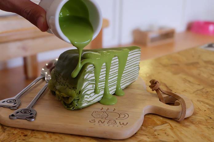 ធ្វើគ្រីម៖ លាយគ្រីម និងទឹកដោះគោចូលគ្នា វាយបញ្ចូលគ្នាឲ្យសព្វល្អ ទុកមួយឡែក។ ធ្វើទឹកស្រោចពីលើ៖ យកឆ្នាំងដាក់លើចង្ក្រាន ដាក់ទឹកដោះគោ និងប័រចូល ច្របល់ចូលគ្នាឲ្យពុះ រួចដាក់ម្សៅតែបៃតងចូល កូរឲ្យពុះ ហើយដាក់ទឹកដោះគោខាប់ចូល កូរចូលគ្នាឲ្យសព្វពុះ ទុកមួយឡែក។ រួចរាល់អស់ហើយរៀបចំនំ យកបន្ទះនំដាក់ម្តងមួយ ដាក់លាបគ្រីមលើ បន្ទះនំ រៀបជាជាន់តាមចំណូលចិត្ត រួចពេលដែលញ៉ាំយើងស្រោចទឹកដែលលាយហើយពីលើ ឆ្ងាញ់អស់ទាស់ (មិនស្រោចទឹកនឹងចូលក៏បាន តាមចំណូលចិត្ត)៕ ចុចមើលវីដេអូពីវិធីធ្វើនៅខាងក្រោម៖