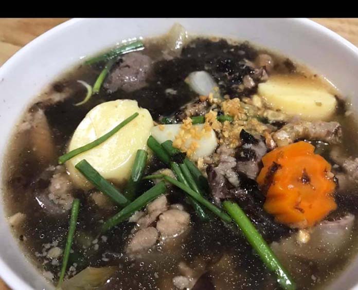 គ្រឿងផ្សំ៖ ជីឆាយ ៣០ក្រាម, ប្រហិតត្រី សាច់ជ្រូក ឬសាច់គោ ១៥០ក្រាម (តាមចំណូលចិត្ត), សាច់ ចិញ្រ្ចាំ ១៥០ក្រាម មូលជាដុំៗ, ផ្សិតក្រៀមត្រាំទឺកឲ្យទន់ កាត់ជាដុំៗ កន្លះកូនចាន, ការ៉ុត ១ផ្លែតូចល្មម, ស្លឹកខ្ទឹមហាន់, ខ្ទឹមចិញ្រ្ចាំលីង ១ស្លាបព្រាបាយ,ទឺកស៊ីអ៊ីវ ៣ស្លាបព្រាបាយ, ស្ករស ១ស្លាបព្រាបាយ, អំបិល កន្លះស្លាបព្រាកាហ្វេ, ទឹក ៣-៤កូនចាន។