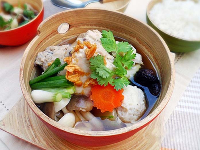 វិធីធ្វើ៖ យកសាច់ជ្រូកចិញ្រ្ចាំ លាយជាមួយទឹកស៊ីអ៊ីវចូល ១-២ស្លាបព្រាកាហ្វេ ច្របល់ចូលគ្នាឲ្យសព្វ ទុកមួយឡែក។ បន្ទាប់មកដាក់ឆ្នាំងដាំទឹកឲ្យពុះ រួចដាក់ទឹកស៊ីអ៊ីវ ស្ករស អំបិល ខ្ទឹមលីង សាច់ចិញ្រ្ចាំ ផ្សិត ការ៉ុត ជីឆាយ ស្លឹកខ្ទឹមចូលគ្នា ច្របល់ឲ្យសព្វ ឆ្អិនហើយដួសដាក់ចានជាការស្រេច៕ ចុចមើលវីដេអូពីវិធីធ្វើនៅខាងក្រោម៖