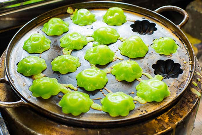 វីធីធ្វើ: យកចានលាយម្សៅស្រូវសាលី ម្សៅមី ម្សៅសម្រាប់ដុតនំ (Baking Powder) ឬម្សៅមេនំបុ័ង ស្ករស អំបិលចូលគ្នាកូរឲ្យសព្វ។ បន្ទាប់មកគោះស៊ុតដាក់ចូល ដាក់ប្រេងសណ្តែក និងទឹកស្លឹកតើយចូល កូរចូលគ្នាឲ្យសព្វ រួចយកទៅច្រោះកុំឲ្យដោយកាក។ រៀបចំអំបែងសម្រាប់ចាក់នំ រួចយកម្សៅដែលលាយហើយចាក់តាមរន្ធ តែកុំចាក់ពេញពេកអាចនឹងហៀរ ព្រោះនំអាចរីកធំ មើលឆ្អិនក្រៀមល្មមយកចេញដាក់ចានជាការស្រេច៕ ចុចមើលវីដេអូពីវិធីធ្វើនៅខាងក្រោម៖