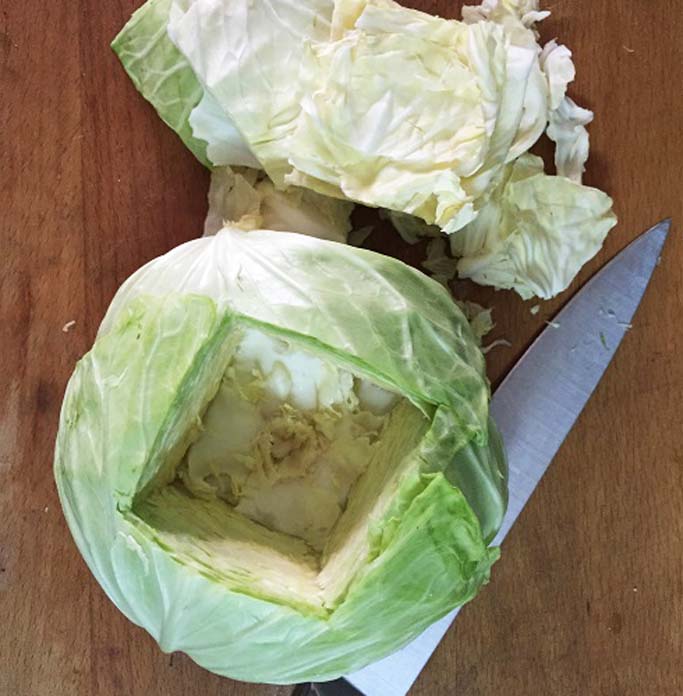 វិធីធ្វើ៖ យកចានដាក់សាច់ជ្រូកចិញ្រ្ចាំ មីសួរ ការ៉ុត ស្លឹកខ្ទឹម ខ្ទឹមសម្រេច ទឹកស៊ីអ៊ីវចូល ច្របល់ចូលគ្នាឲ្យសព្វ រួចយកទៅដាក់ក្នុងស្ពៃក្តោប។ ដាក់ទឹកចូលឆ្នាំង ដាំមួយរពុះ រួចដាក់ទឹកត្រី ស្ករស អំបិល និងការ៉ុត ឆៃថាវចូល ទុកឲ្យពុះ។ បន្ទាប់មកយកស្ពៃក្តោបដាក់ស្នូលហើយ ដាក់ចូលឆ្នាំង ទុករម្ងាស់ប្រហែល ១៥-២០នាទី ឆ្អិនហើយដួដាក់ចានជាការស្រេច៕ ចុចមើលវីដេអូពីវិធីធ្វើនៅខាងក្រោម៖