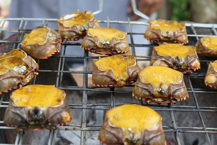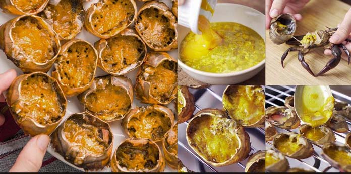 គ្រឿងផ្សំ៖ ក្តាម ១៥-២០ធំល្មម, ស៊ុត ១-២គ្រាប់, ទឹកស៊ីអ៊ីវបន្តិច, អំបិលបន្តិច។ វិធីធ្វើ៖ បកក្តាមយកស្នូក រួចខ្វេះខ្លាញ់ក្តាមដាក់ចាន (ទុកស្នូកមួយឡែក) លាយជាមួយស៊ុត ទឹកស៊ីអ៊ីវ និងអំបិល ច្របល់ចូលក្នាឲ្យសព្វ។ បន្ទាប់មកដួសខ្លាញ់ក្តាមដាក់ចូលស្នូក យកទៅអាំងឆ្អិនល្មម ឬក្រៀម តាមចំណូលចិត្ត ជាការស្រេច៕ ចុចមើលវីដេអូពីវិធីធ្វើនៅខាងក្រោម៖