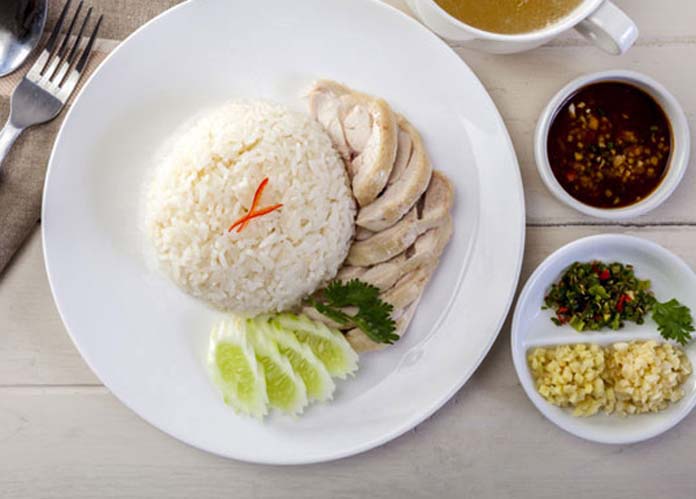 គ្រឿងផ្សំ៖ សាច់មាន់ ៤០០ក្រាម (សាច់ភ្លៅ ទ្រូង ស្លាប តាមចំណូលចិត្ត), ខ្ញី ៣៥ក្រាម ហាន់បន្ទះៗ, គល់ជីវ៉ាន់ស៊ុយ ២-៣គល់, អង្ករ ៥០០ក្រាម (អង្ករផ្កាម្លិះ) យកទៅលីង, ទឹក ៨០០មីលីលីត្រ។ គ្រឿងផ្សំទឹកជ្រលក់៖ ខ្ញីចិញ្ច្រាំ ១បាយ, ខ្ទឹមចិញ្ច្រាំ កន្លះស្លាព្រាបាយ, ម្ទេសហាន់ ១-២បាយ, សៀងចិញ្ច្រាំ ១ស្លាបព្រាបាយកន្លះ, ស្ករស ១ស្លាបព្រាបាយ, ទឹកស៊ីអ៊ីវ កន្លះស្លាបព្រាបាយ, ទឹកស៊ីអ៊ីវខាប់ ១ចុងស្លាបព្រាកាហ្វេ, ទឹកខ្មេះ ១/២-១ស្លាបព្រាបាយ។