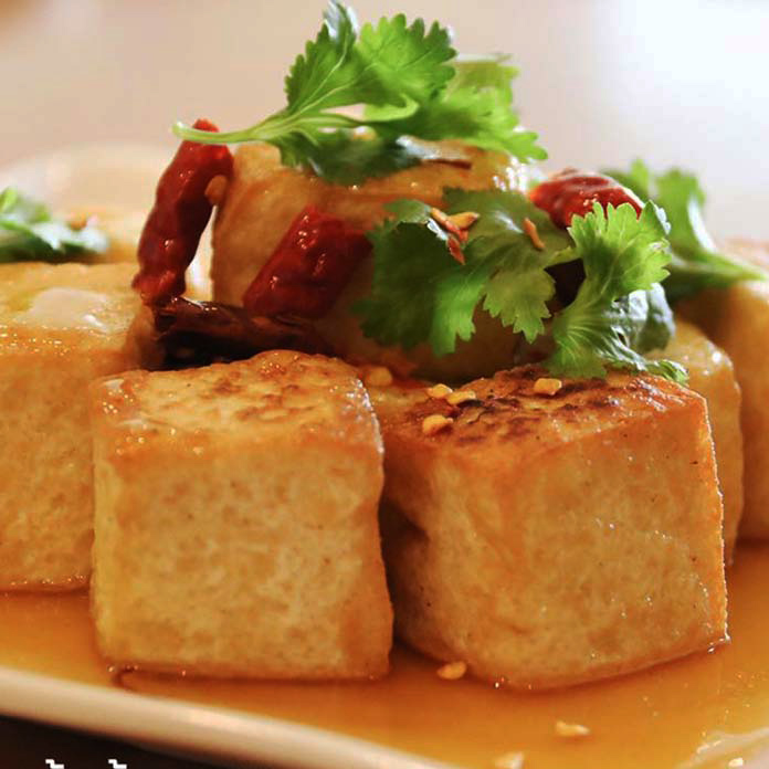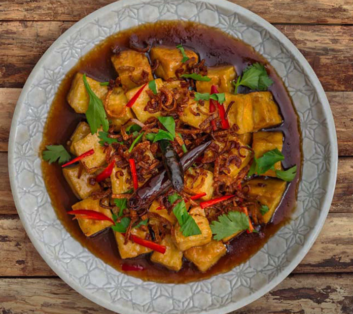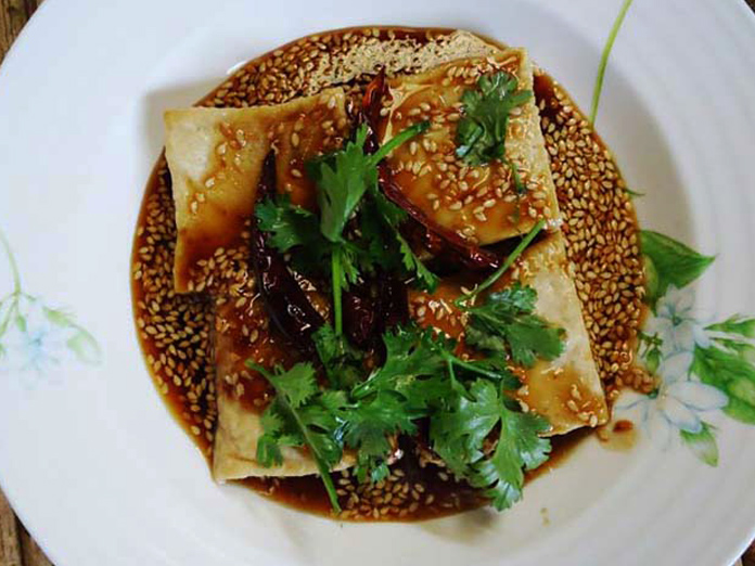 ៣.យកតៅហ៊ូបំពងដាក់ចាន ហើយស្រោចទឹកជ្រលក់ពីលើ ហើយដាក់ម្ទេសក្រៀមចូលជាការស្រេច៕