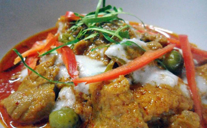 ១.ដាំឆ្នាំងដាក់ខ្ទិះដូងចូលរម្ងាស់ឱ្យពុះ រួចដាក់គ្រឿងបុកចូលច្របល់ចូលគ្នាឱ្យសព្វ ហើយដាក់សាច់គោចូលច្របល់ចូលគ្នាទុកឱ្យសាច់ឆ្អិនបន្តិច
