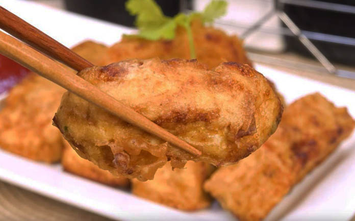 ៤.បន្ទាប់មកដាំខ្ទះដាក់ប្រេងចូលអោយក្តៅ រួចយកដុំពងទា ចំហុយហើយដាក់ប្រឡាក់ជាមួយគ្រឿងផ្សំទី២ដែលលាយហើយ ដាក់ចូលបំពងអោយឆ្អិនក្រៀមល្មមតាមចំណូលចិត្តជាការស្រេច៕