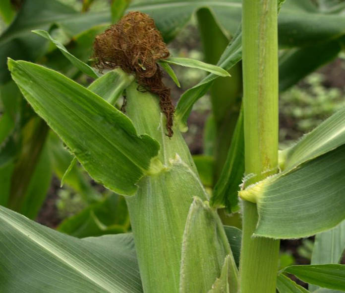-ផ្លែពោតចេញតាមសងខាងដូចជាមែកឈើ ហើយស្រោបទៅដោយសម្បក ហើយចេញគ្រាប់ជាជួរៗនៅលើស្នូលរឹង។
