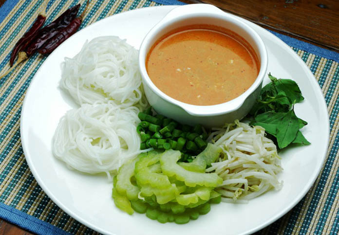 ៤.បន្ទាប់មកដាក់ទឹកត្រី ស្ករ ម្សៅស៊ុប និងខ្ទិះដូងចុងចូលច្របល់ចូលគ្នាឲ្យសព្វ បើគោកអាចបន្ថែមទឹកបន្តិចតាមចំណូលចិត្ត ទុករម្ងាស់រយៈពេល ៣-៥នាទី រួចភ្លក្សមើលល្មមតាមចំណូលចិត្ត ឆ្អិនហើយដួសដាក់ចានជាការស្រេច។ ហូបជាមួយនំបញ្ចុក និងបន្លែខ្ចីៗស្រស់ៗ ឆ្ងាញ់អស់ទាស់៕