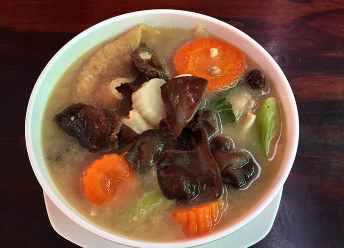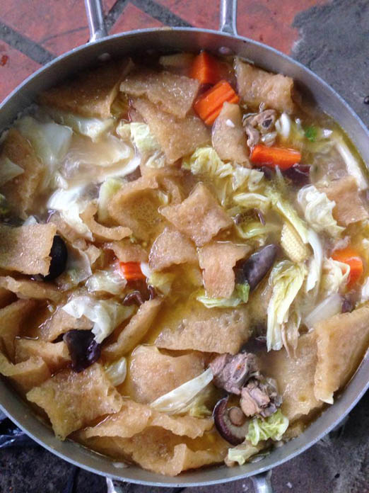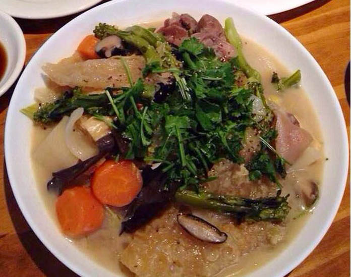 ៤.ពេលពុះហើយ ដាក់ការ៉ុត ស្ពៃក្តោប និងបន្លែទាំងអស់ចូលកូរវាបន្តិចទៀត ដាក់ទឹកចូលយកស្រេច គ្របទុករហូតទាល់តែបន្លែឆ្អិនល្មមតាមដែលចង់បាន ពេលហូបដួសដាក់ចានរោយស្លឹកខ្ទឹមពីលើជាការស្រេច៕