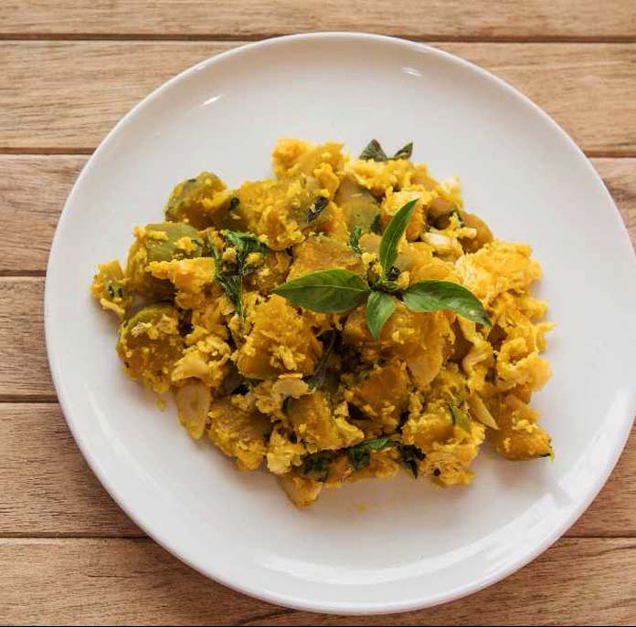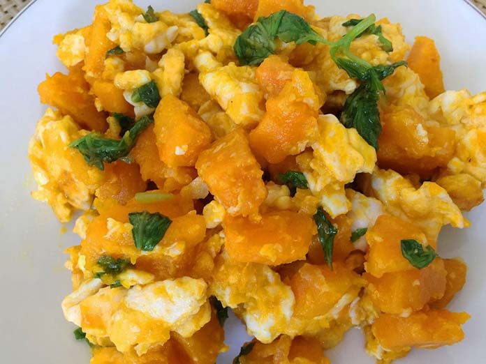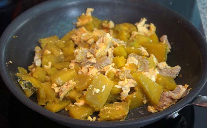 ៤.រួចហើយគោះស៊ុតដាក់ចូលឆាច្របល់ចូលគ្នាឲ្យសព្វល្អ ហើយដាក់ជីរនាងវងចូលឆា ៣-៤ត្រលប់ទៀត ឆ្អិនហើយដួសដាក់ចានជាការស្រេច៕