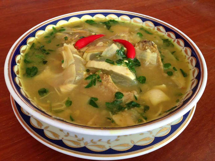 ២.ដាំឆ្នាំងដាក់ប្រេងឆាចូលឲ្យក្តៅ ដាក់ប្រហុក និងគ្រឿងបុកចូលរំលីងឲ្យឈ្ងុយ រួចដាក់ត្រី និងសាច់ជ្រូក ដាក់អង្ករលីង ទឹកត្រី ស្ករត្នោត និងម្សៅស៊ុបចូលច្របល់ចូលគ្នាឲ្យសព្វ