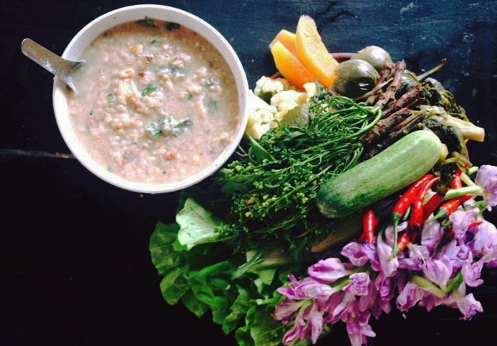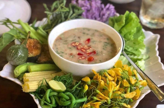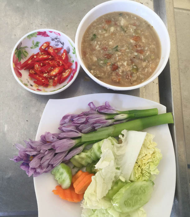 ៣.រួចហើយរៀបចំបន្លែដាក់ចាន ដួសទឹកគ្រឿងដាក់ចានបន្ថែមជាមួយសណ្តែកដីបន្តិច និងស្លឹកជីរបន្តិចឆ្ងាញ់អស់ទាស់៕