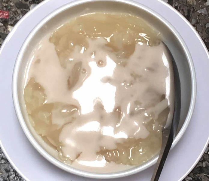 គ្រឿងផ្សំ៖ គ្រាប់ត្នោតខ្ចី ៦-៨គ្រាប់,អង្ករដំណើប ១កំប៉ុង,ខ្ទិះដូង កន្លះចានចង្កឹះ,ទឹកស្អាត ៥ចានចង្កឹះ,ស្ករស ១០ស្លាបព្រាបាយ,អំបិល កន្លះស្លាបព្រាកាហ្វេ។