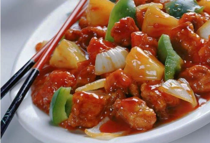 គ្រឿងផ្សំ៖ ឆ្អឹងជំនីខ្ចី ៣០០ក្រាម(កាប់ជាដុំៗល្មម),ប៉េងប៉ោះ ម្នាស់ ខ្ទឹមបារាំង ម្ទេសប្លោក,ម្សៅបំពង ៥ស្លាបព្រាបាយ,ខ្ទឹមចិញ្រ្ចាំ,ទឹក ១ចានចង្កឹះ,ម្សៅឆា ១ស្លាបព្រាបាយ,ទឹកត្រី ១/២ស្លាបព្រាបាយ,អំបិលបន្តិច,ស្ករស ១/២ស្លាបព្រាបាយ,ទឹកប៉េងប៉ោះ ៩ស្លាបព្រាបាយ,ស្លឹកខ្ទឹមហាន់។