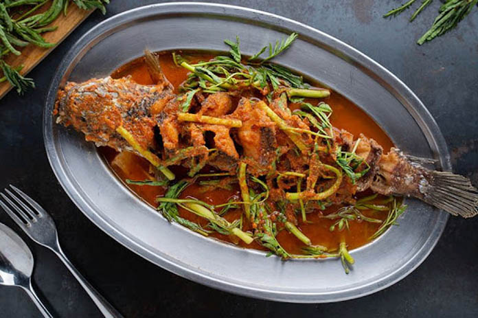 ៤.បន្ទាប់មកយកត្រីដែលបំពងហើយដាក់ពីលើបន្លែ រួចយកគ្រឿងដែលឆ្អិនហើយ ដាក់ស្រោយពីលើជាការស្រេច។នេះគ្រាន់តែជាវិធីធ្វើមួយបែបដែលយើងខ្ញុំបានរៀបរាប់ជូន ព្រោះវិធីធ្វើអាចខុសគ្នា និងមានច្រើនបែប៕