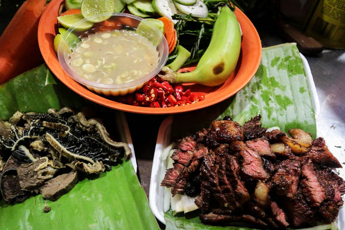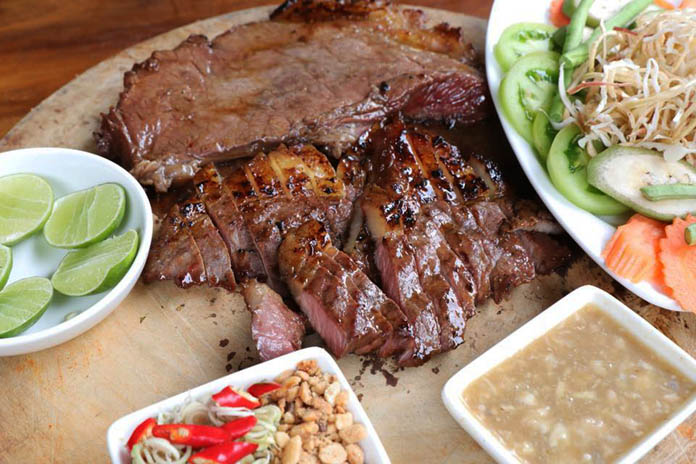 ៤.រួចរាល់ហើយពេលញ៉ាំដួសទឹកប្រហុកដាក់ចាន ដាក់លាយបន្ថែមជាមួយគល់ស្លឹកគ្រៃ ម្ទេស សណ្តែកដី និងច្របាច់ក្រូចឆ្មារចូលល្មមតាមចំណូលចិត្ត យកសាច់គោអាំងញ៉ាំផ្ទាប់ជាមួយបន្លែ និងទឹកប្រហុកឆ្ងាញ់អស់ទាស់៕