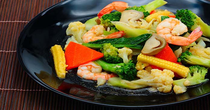 ៣.បន្ទាប់មកដាក់បន្លែ ផ្កាខាត់ណា ផ្កាខាត់ណាខៀវ ការ៉ុត ស្នៀតពោត និងផ្សិតចូលឆាច្របល់ចូលគ្នាឲ្យបន្លែឆ្អិនបន្តិច រួចដាក់ទឹកប្រេងខ្យង ទឹកស៊ីអ៊ីវ និងស្ករសចូលអាចបន្ថែមទឹកចូលបន្តិចឆាច្របល់ចូលគ្នាឲ្យសព្វ ឆ្អិនហើយដួសដាក់ចានជាការស្រេច៕