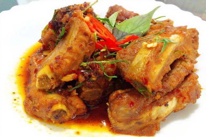 គ្រឿងផ្សំ៖ ឆ្អឹងជំនី ៥០០ក្រាម កាប់ដុំៗ,គ្រឿងបុក ២-៣ស្លាបព្រាបាយ (គល់ស្លឹកគ្រៃ រមៀត ខ្ទឹមស ខ្ទឹមក្រហម ម្ទេសក្រៀម ម្ទេស និងអំបិលបន្តិច បុកចូលគ្នា),ស្លឹកក្រូចសើច ៤-៥សន្លឹក,ម្ទេស ២-៣គ្រាប់,ទឹកត្រី ៣ស្លាបព្រាបាយ,ស្ករ ២ស្លាបព្រាកាហ្វេ។