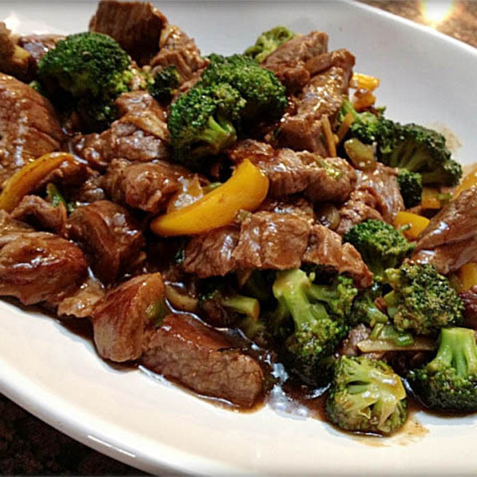 គ្រឿងផ្សំ៖ សាច់គោ ២០០ក្រាមហាន់ស្តើងល្មម ឬហាន់ជាដុំៗល្មម,ការ៉ុត ៣០ក្រាម,ផ្កាខាត់ណាខៀវ ២០០ក្រាម,ខ្ទឹមបារាំង ពាក់កណ្តាល,ទឹកប្រេងខ្យង ២ស្លាបព្រាបាយ,ទឹកស៊ីអ៊ីវ កន្លះស្លាបព្រាបាយ,ស្ករស កន្លះស្លាបព្រាបាយ,ប្រេងល្ង ១ស្លាបព្រាកាហ្វេ,ខ្ទឹមសចិញ្រ្ចាំ។