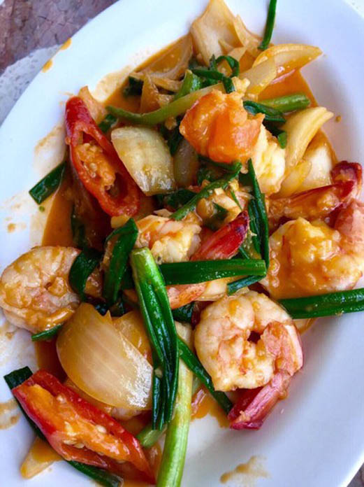 ២.ដាំខ្ទះដាក់ប្រេងឆាចូលបន្តិច ដាក់ខ្ទឹមចិញ្រ្ចាំចូលរំលីងឲ្យឈ្ងុយបន្តិច រួចដាក់បង្គាចូលឆាឲ្យឆ្អិនបន្តិច