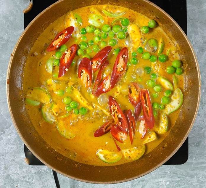 ១.ដាំឆ្នាំងដាក់ខ្ទិះដូងចូលរម្ងាស់ឱ្យពុះ រួចដាក់គ្រឿងបុកចូលច្របល់ចូលគ្នាឱ្យសព្វ ហើយដាក់សាច់គោចូលច្របល់ចូលគ្នាទុកឱ្យសាច់ឆ្អិនបន្តិច